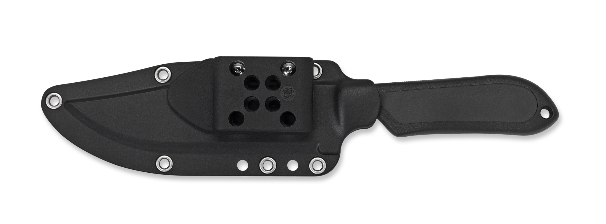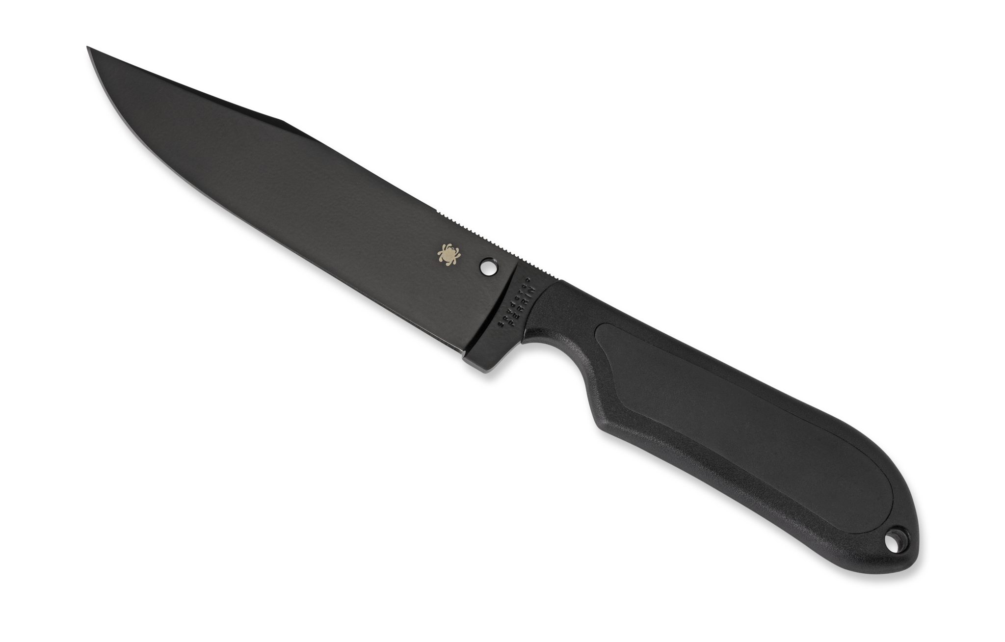 Perrin’s original FB04 Street Bowie was one of Spyderco’s earliest fixed-blade collaborations. Its versatile Bowie-style blade offers both power and finesse, making it suitable for a wide range of cutting chores. The injection-molded fiberglass-reinforced-nylon (FRN) handle features hand-filling contours and molded Kraton® inserts that, together with the deep index-finger choil, literally lock the knife into the user’s hand for superior control.