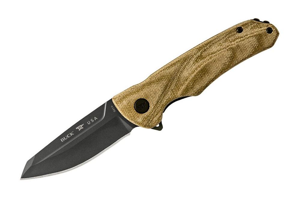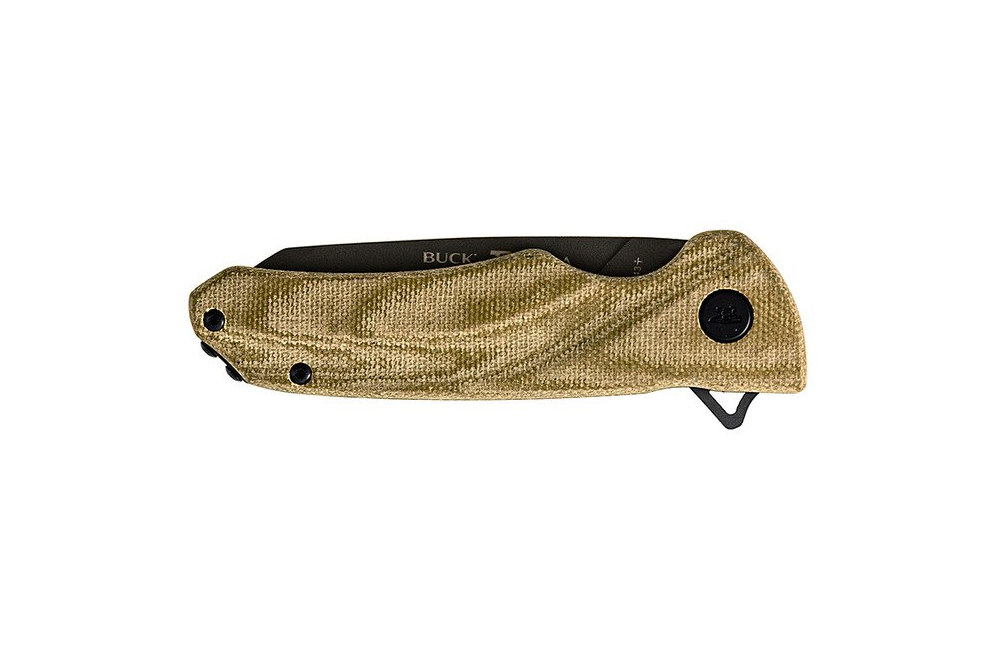 The reverse tanto blade shape gives the knife piercing strength while also giving you the smooth cutting surface of a drop point. The blade is S30V steel tempered with Buck’s famous BOS heat-treat; the blade has fantastic edge retention. The blade is Cerakote® coated to provide further corrosion resistance and durability. The handle is a strong and durable, black canvas micarta. The knife includes a Cerakote® coated, removable, deep carry pocket clip.