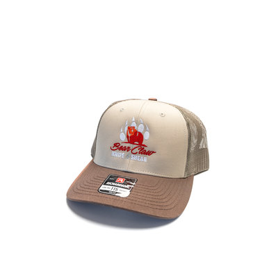 Bear Claw Logo Trucker Cap--Tan, Loden, Brown