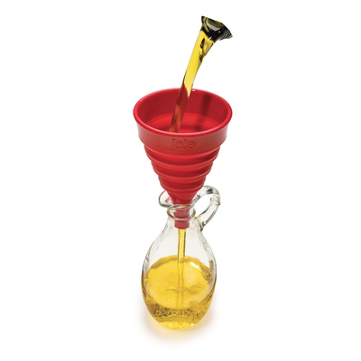 Joie's Collapsible Silicone Funnel makes filling containers with liquid and dry ingredients easier with less mess. Easily fill bottles, cruets, cooking oil bottles, syrup dispensers, salt and pepper shakers, soap dispensers, spray bottles, and more.