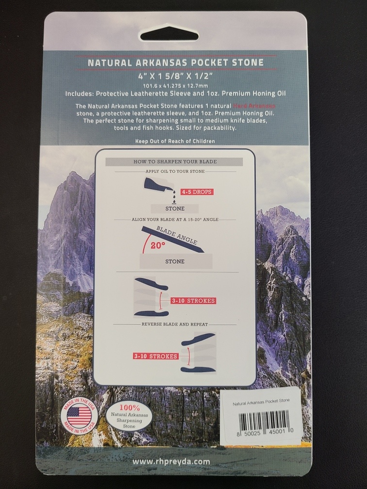 The Natural Arkansas Pocket Stone features 1 natural Hard Arkansas stone, a protective leatherette sleeve, and 1 oz. Premium Honing Oil. The perfect stone for sharpening small to medium knife blades, tools and fishhooks. Sized for packability.
