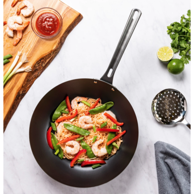 - Pre-seasoned carbon steel construction for healthy, lightweight and long-lasting cookware