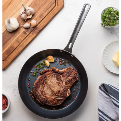 For those who like cooking with cast iron but love the versatility of a clad stainless steel pan, the Viking Blue Carbon Steel 12-Inch Pan is the perfect pan.