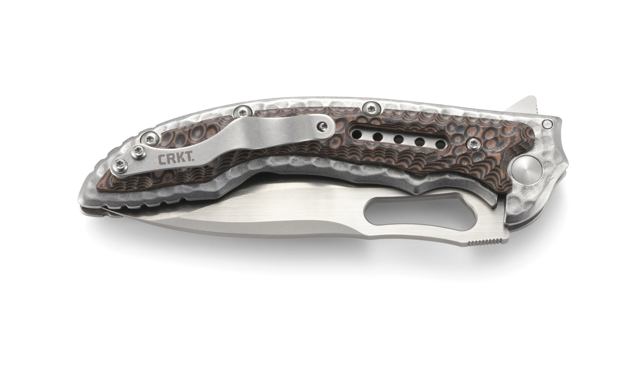 While the Fossil™ is hardcore on the inside, it’s gorgeous on the outside. The handles are made of stainless steel with a unique hammered finish. Contoured multi-colored G10 handle overlays make it look like a gator. But the blade won’t come down and bite you in the open position thanks to a frame lock.