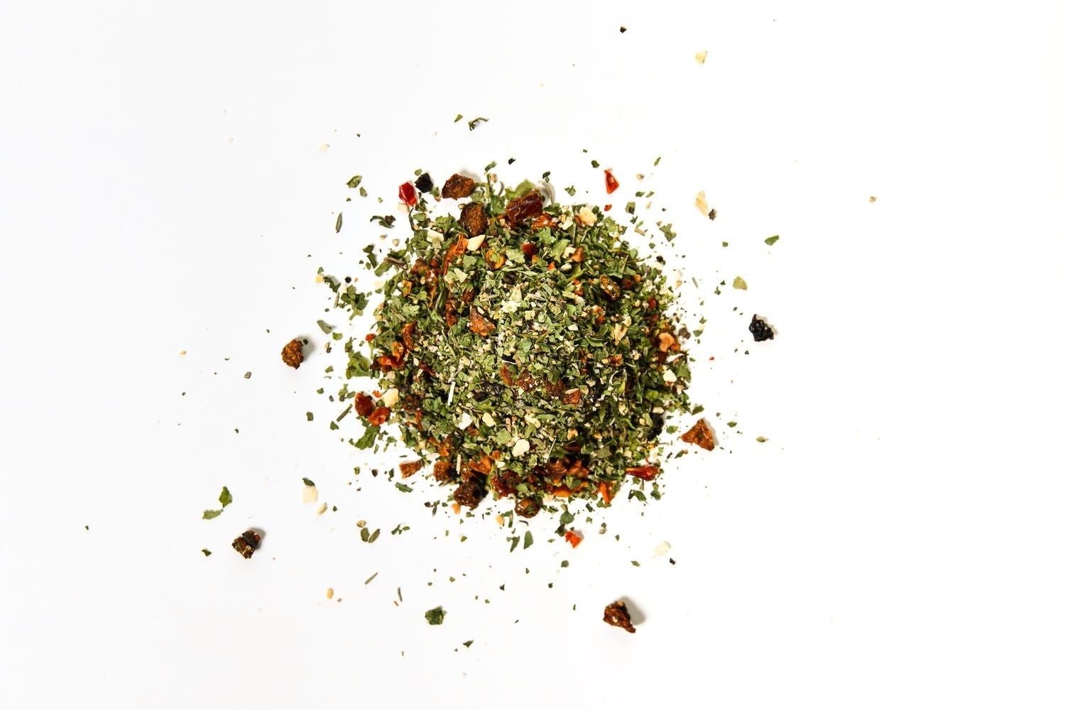 Ingredients: Applewood smoked cracked peppercorn, unrefined sea salt, roasted red pepper, parsley, bell pepper, ancho chili, onion, garlic, coconut sugar, thyme.