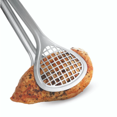 has been added to your shopping cartReplaces tongs, spatulas and forks. Turns, flips and carries food in a flash. Great for kitchen and grilling. Leaves meat unblemished and juicy inside. Measures 12".