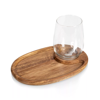 Picnic Time, Toscana, Wine Appetizer Plate Set Of 4, Acacia Wood