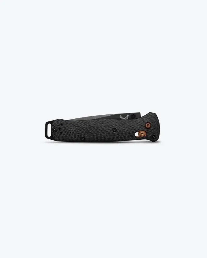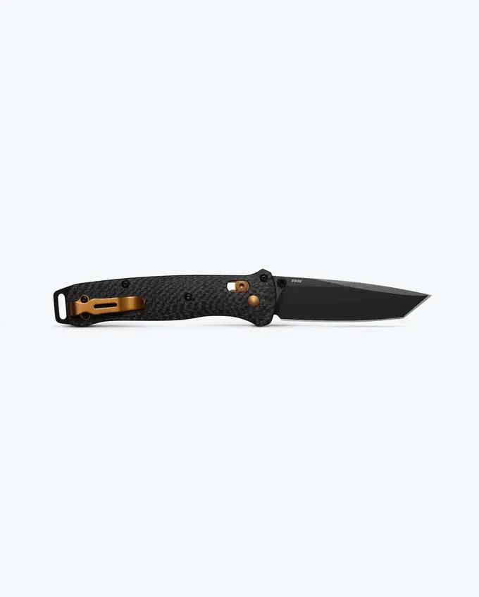 The 537BK-10 features an ultra-light, diamond-textured carbon fiber handle paired with a durable S90V blade, designed in the classic Bailout® tanto style. Topped off with a black Cerakote® blade finish and handsome dark copper accents.