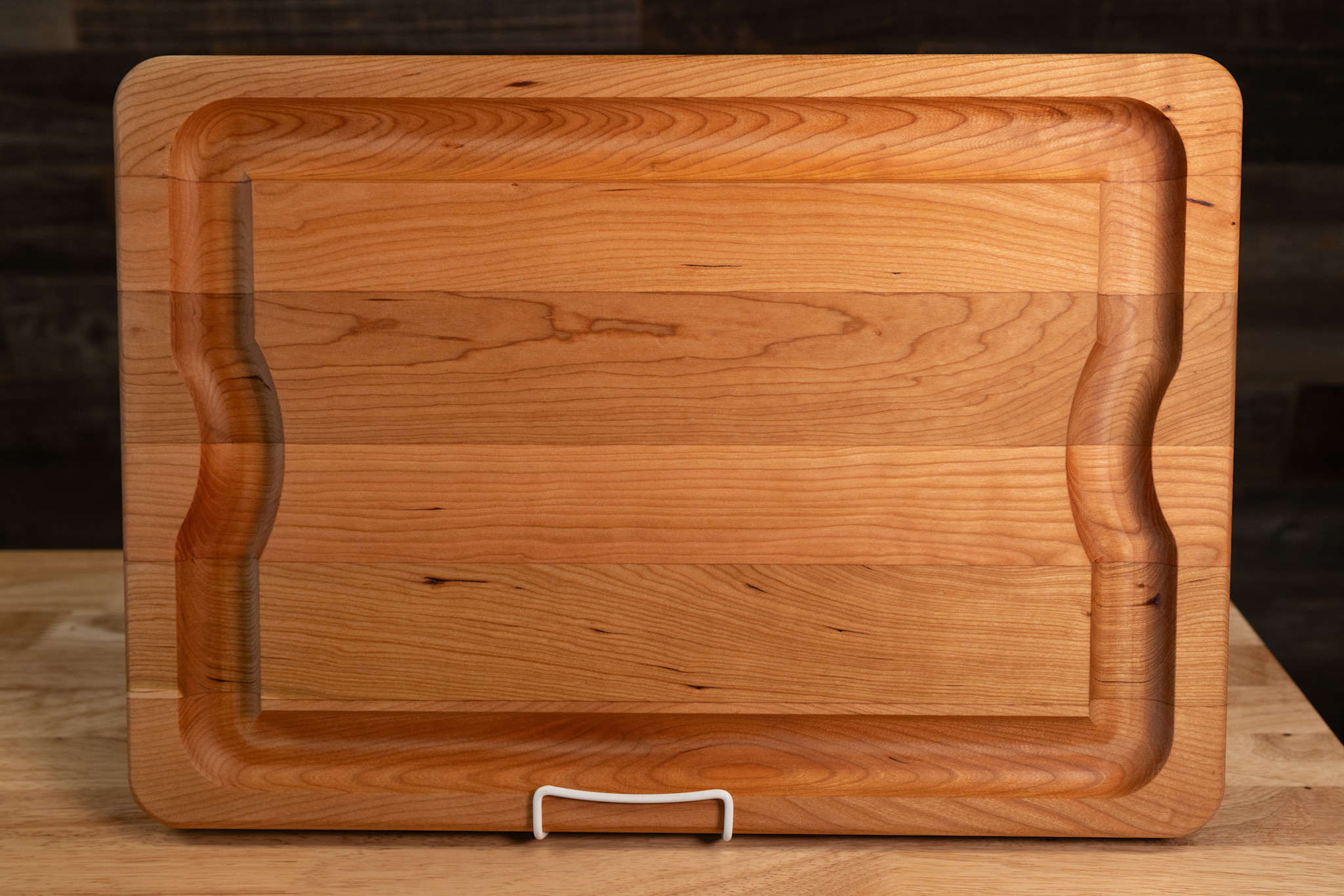 The Cherry BBQ Carving Board is an update on a classic in rich beautiful cherry wood. This board is ideal for personalization. A great board for everyday chopping or carving the holiday roast.