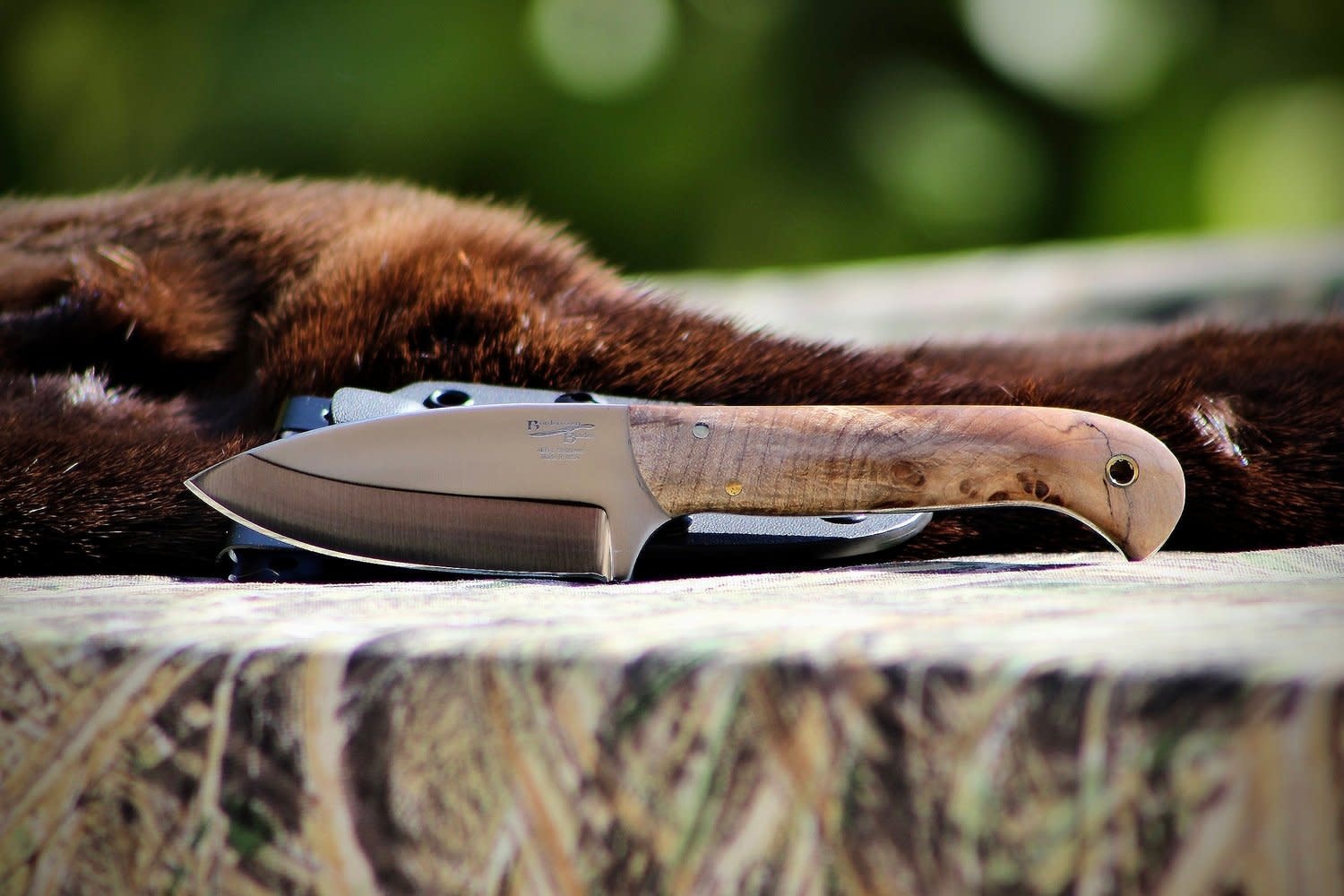 Bordertown Blades Small Hunter Fixed Blade Maple Burl Handle