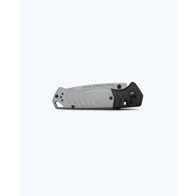 The 593GY-02 features an Elmax stainless powder steel blade in a Gunmetal Gray Cerakote® finish. Built around our rapid and reliable AXIS® Assist mechanism with an integrated spine safety and featuring a ferro rod striking choil in the heel of the blade.