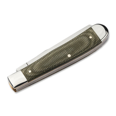 Refined, confident, proven. This trapper with green canvas Micarta scales is one of the most versatile traditional pocketknife patterns ever mad, and this modern interpretation elevates it even further. Equipped with a drop-point blade and a spear-point blade, it delivers exceptional control and adaptability for everyday cutting tasks. Both blades are crafted from rugged D2 tool steel, valued for its excellent edge retention and corrosion resistance. Opening is classic and deliberate via nail nicks, while the slipjoint mechanism secures each blade with reliable spring tension, offering traditional operation with reassuring precision. For a contemporary touch, the canvas Micarta handle is framed by polished nickel silver bolsters and accented with three decorative rivets, blending modern materials with timeless styling. Balanced in the hand and unmistakably Tree Brand, this trapper is built for daily use with enduring character. Timelessly beautiful and crafted from tradition.