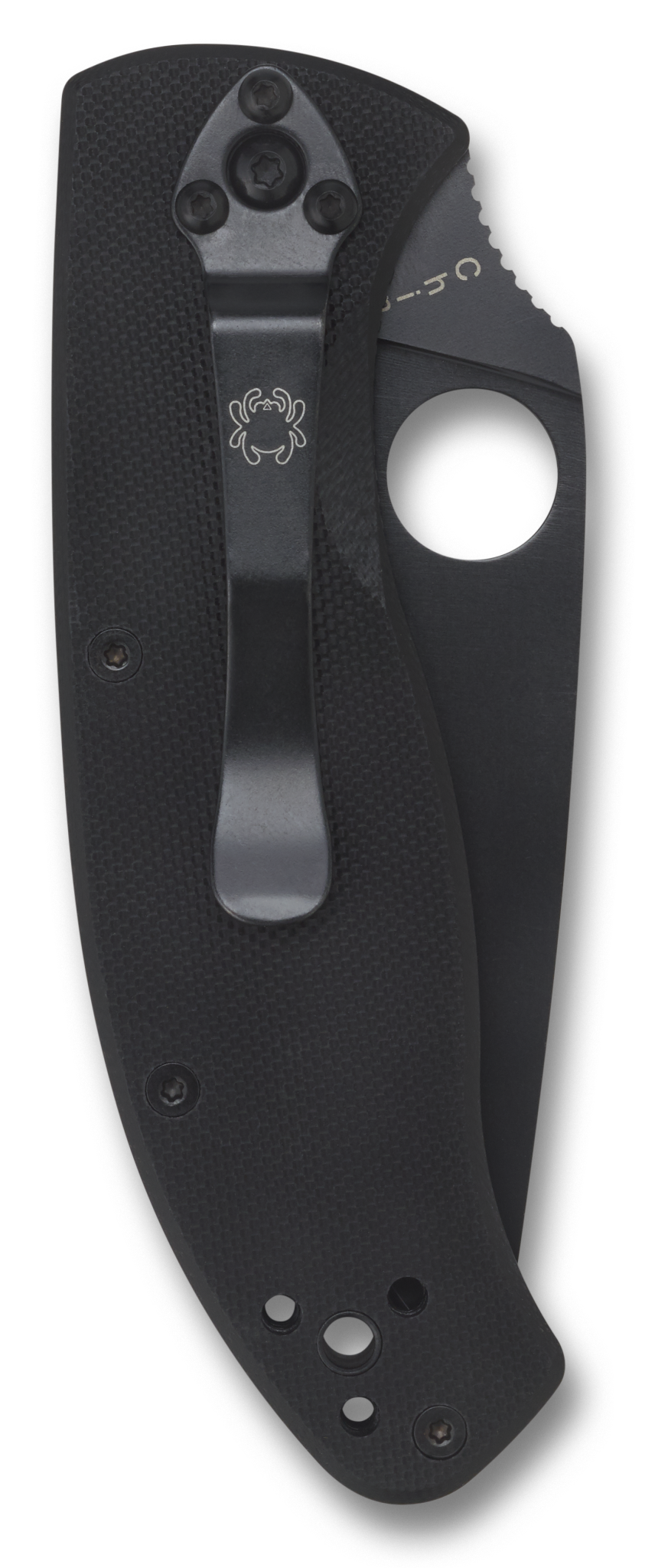 The blade's shape, coupled with an oversized Spyderco Round Hole, position the hand for instant and confident blade opening. Sharp from tip to hilt, the Tenacious offers the most cutting edge possible for the blade's length. A black 4-way pocket clip lets the folder be set in a variety of carry and draw positions: Tip-up/tip-down left-hand/right-hand.