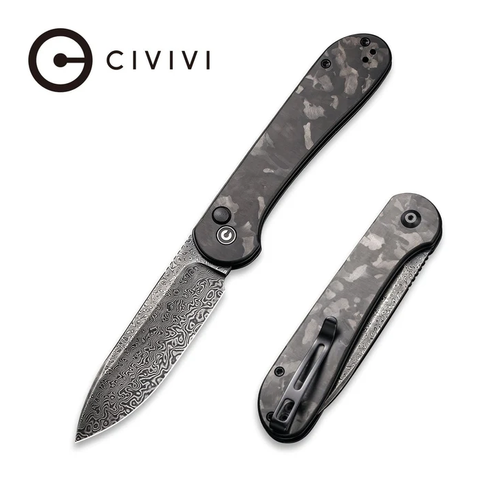 Civivi, Button Lock Elementum Carbon Fiber, Damascus