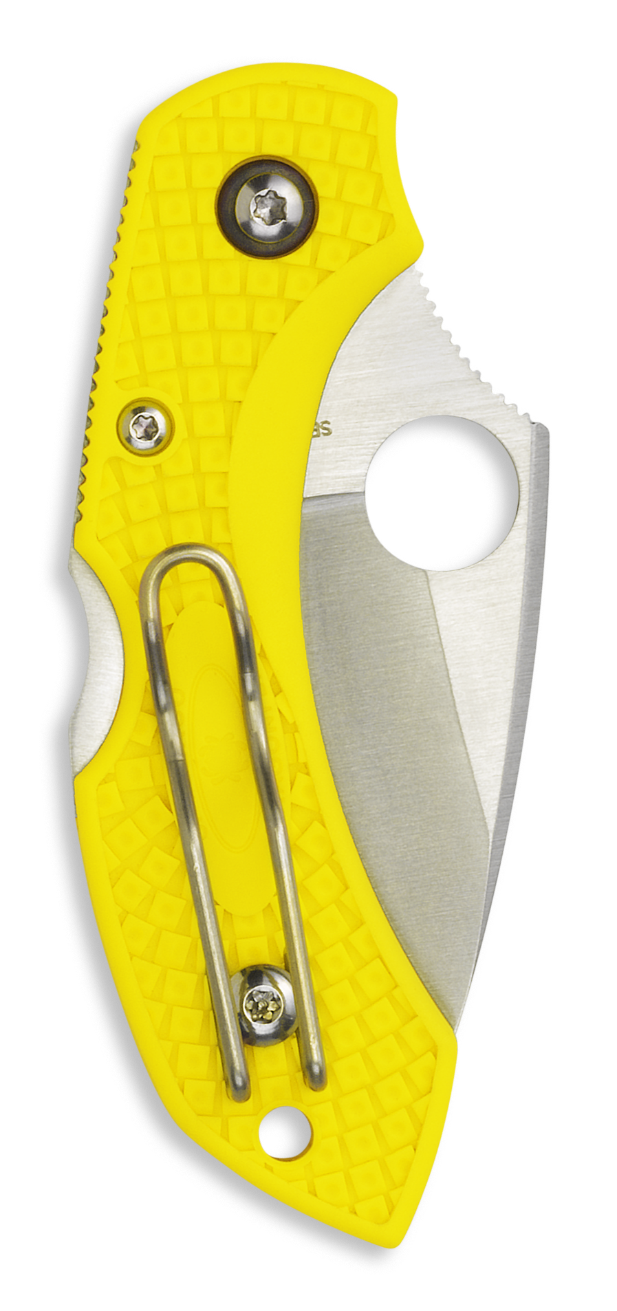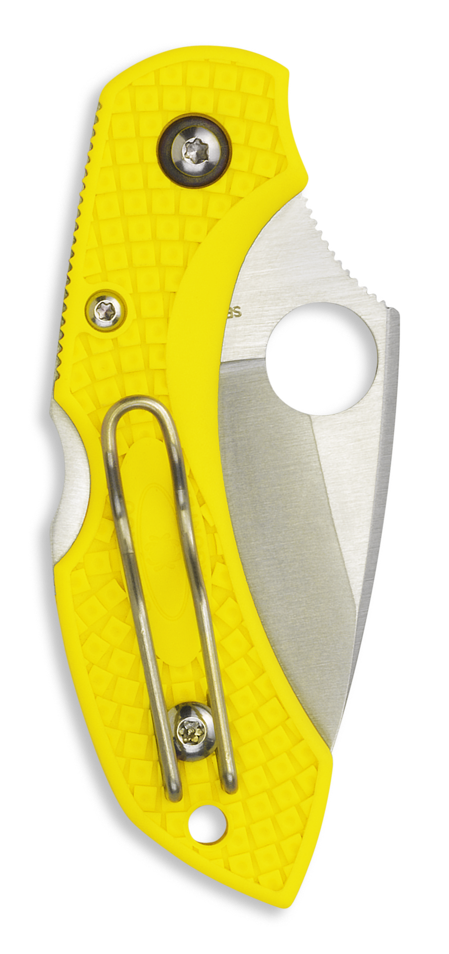 The addition of textured jimping on the choil, spine and screw-together handle construction and a left/right tip-up wire clip make pocket carry effortless and convenient. Precise positioning of the enlarged Spyderco Round Opening Hole in relation to the pivot makes opening/closing smooth. Hollow-ground for high cutting performance, the blade comes in a PlainEdge or SpyderEdge configuration.