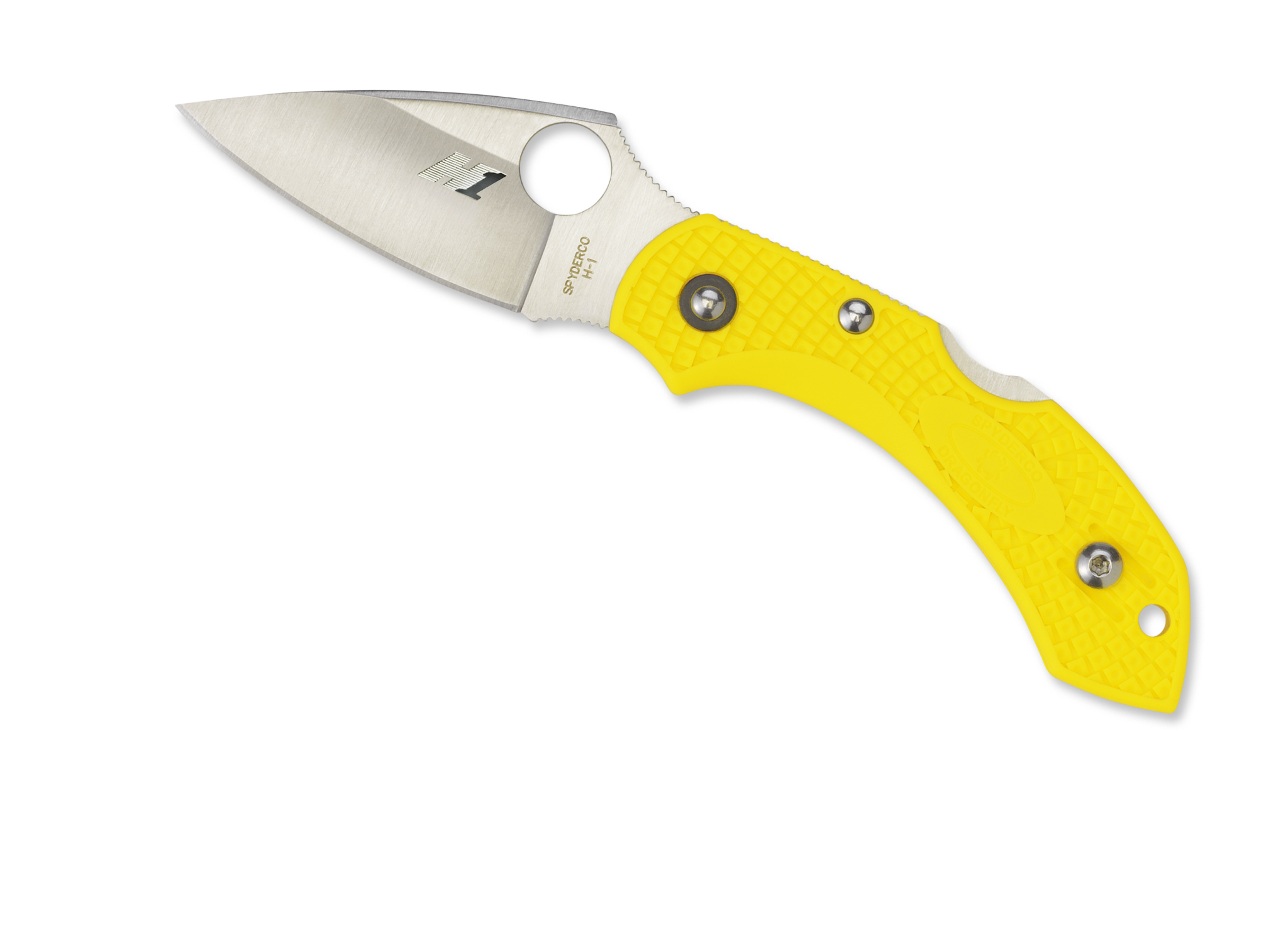 The Spyderco Dragonfly 2 is now being offered with an H-1 blade option, called the Dragonfly 2 Salt. What makes the Dragonfly a bestseller is its mid-sized blade, ergonomic handle with a front-finger choil and a spine cusp. Its blade-to-handle geometry and leveraging points fill a gripping hand, making it feel like you're cutting with a much larger knife. Its FRN (fiberglass reinforced nylon) handle is molded with a grip pattern called Bi-Directional Texturing that ergonomically fills the hand with a series of angles and leveraging spots and is available in Marine Yellow.
