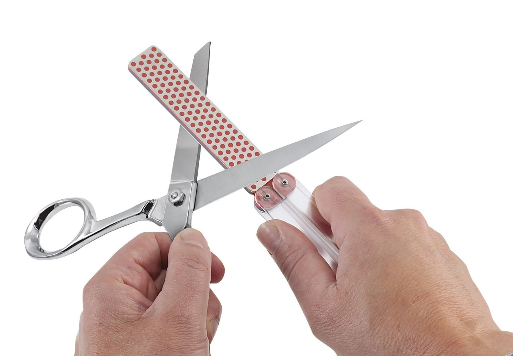 Extra-Coarse diamond (60 micron / 220) provides easy removal of material on a damaged edge. Coarse diamond (45 micron / 325) to quickly restore a neglected edge. Convenient size: 9 1/2" open. 5" closed. Folding plastic handles protect sharpener when not in use. Sharpens in a fraction of the time required by conventional stones. No messy oils needed—sharpen dry or with water. Durable construction will provide years of consistent performance and reliable service. For proper tool maintenance, woodworkers, chefs and other professionals rely on the superior quality and versatility of DMT® products. Made in USA.