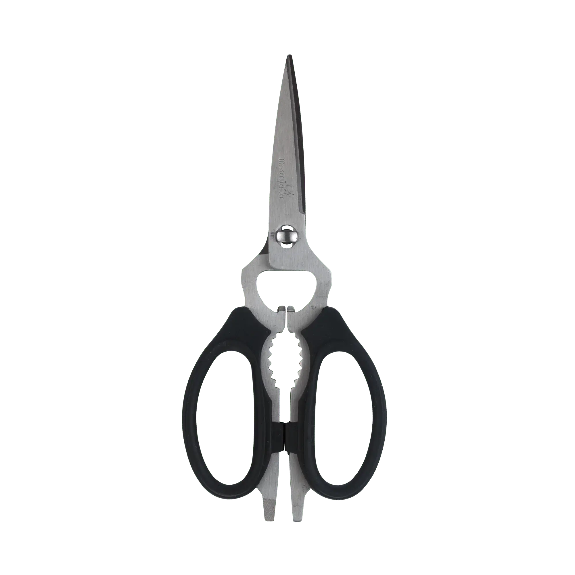 The Messermeister 8" Take-Apart Utility Scissors are similar to the 8.5" Take-Apart Utility Shears, except the handles of these scissors are suitable for both lefties and righties. A few of the functions include a screw driver, nut cracker, and jar opener