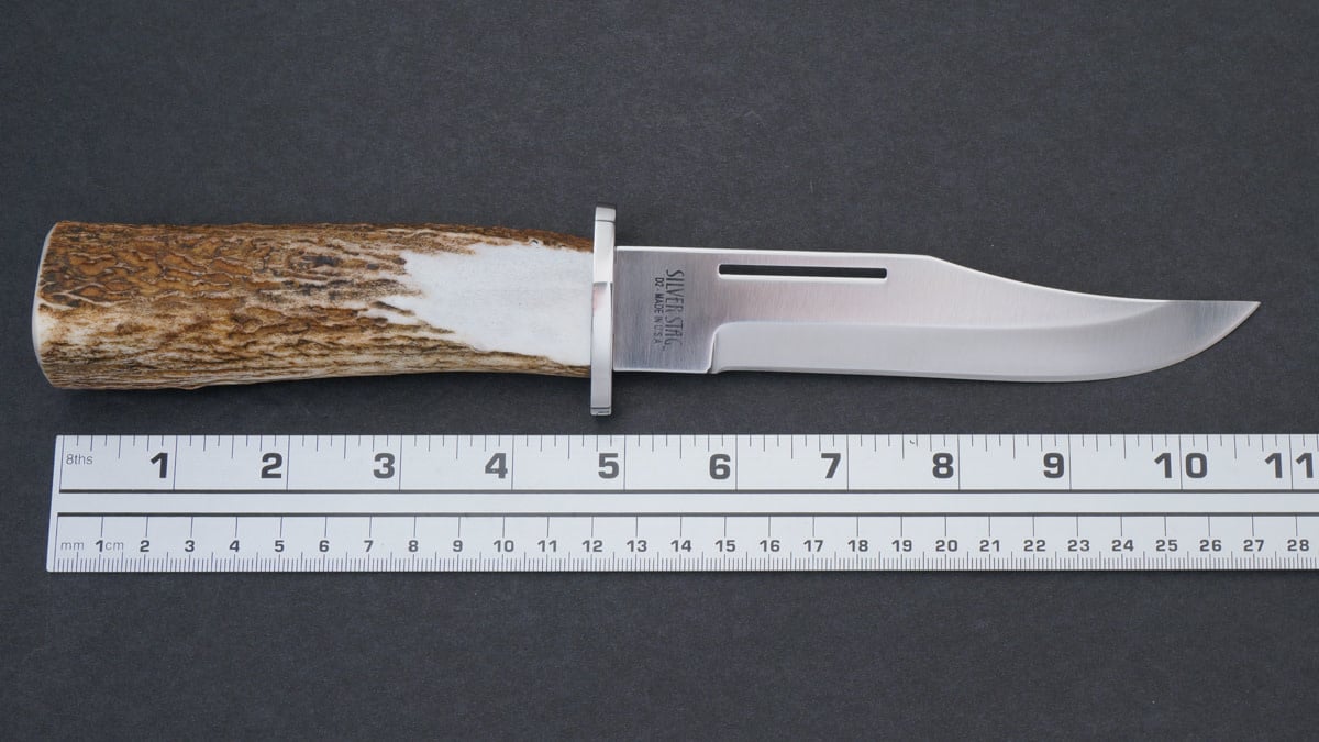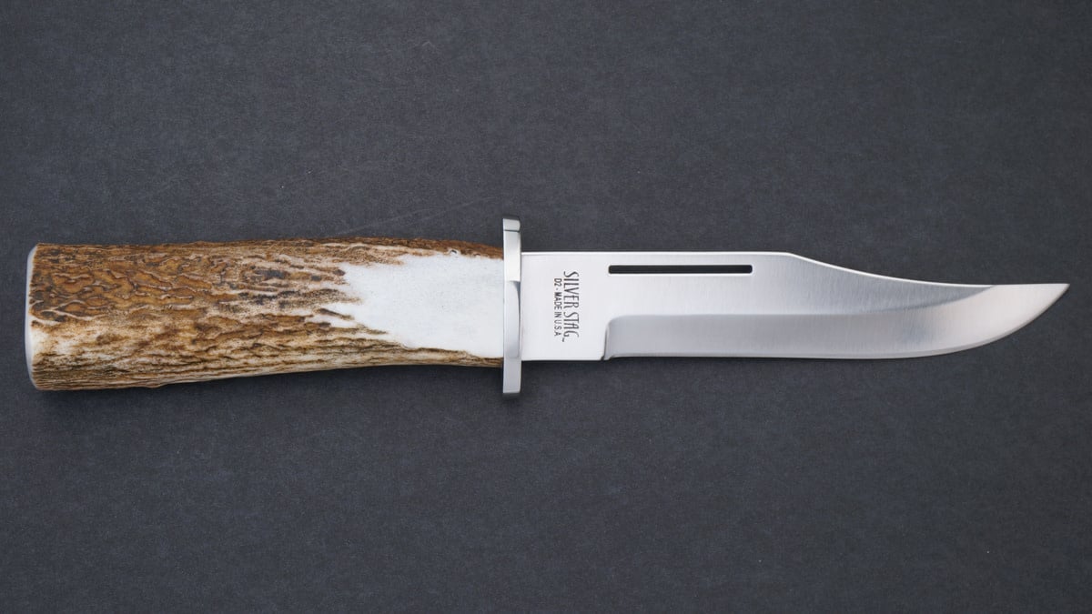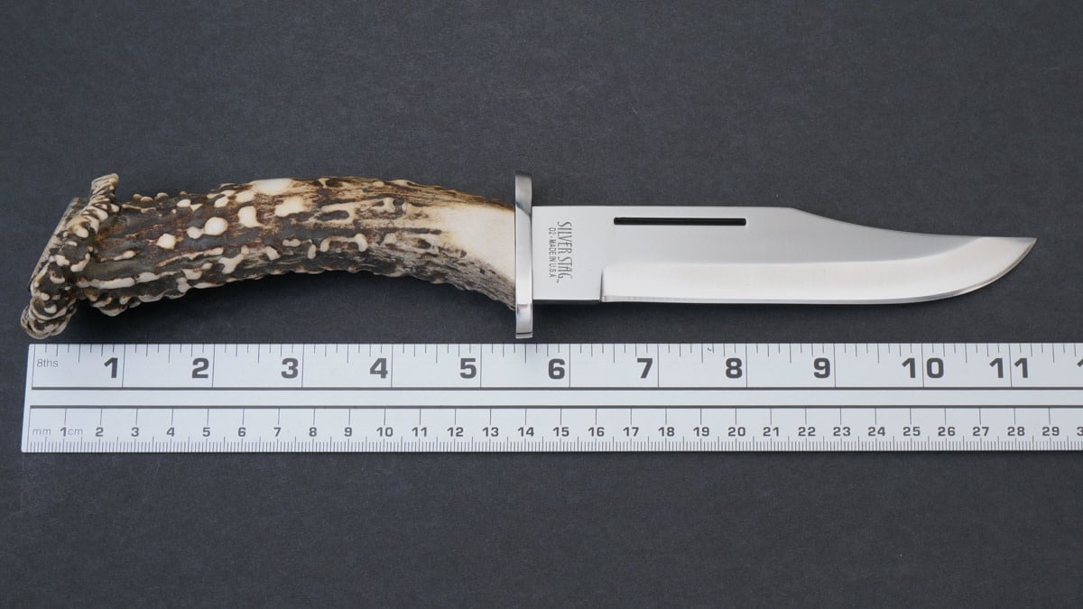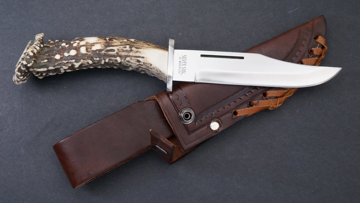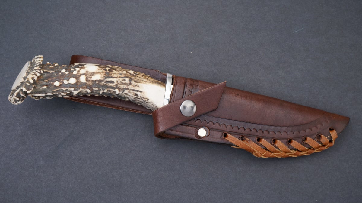 Silver Stag, Deep Valley w/ Crown Handle and D2 Tool Steel Blade w/ Leather Sheath