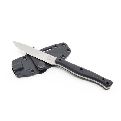 Though smaller and easier to carry than some bushcraft knives, the design and materials make it far outperform its size and weight. The Exodus 4 makes a great primary belt knife and excels in camp or kitchen. Made of CPM S35VN super steel and features a custom Kydex sheath.
