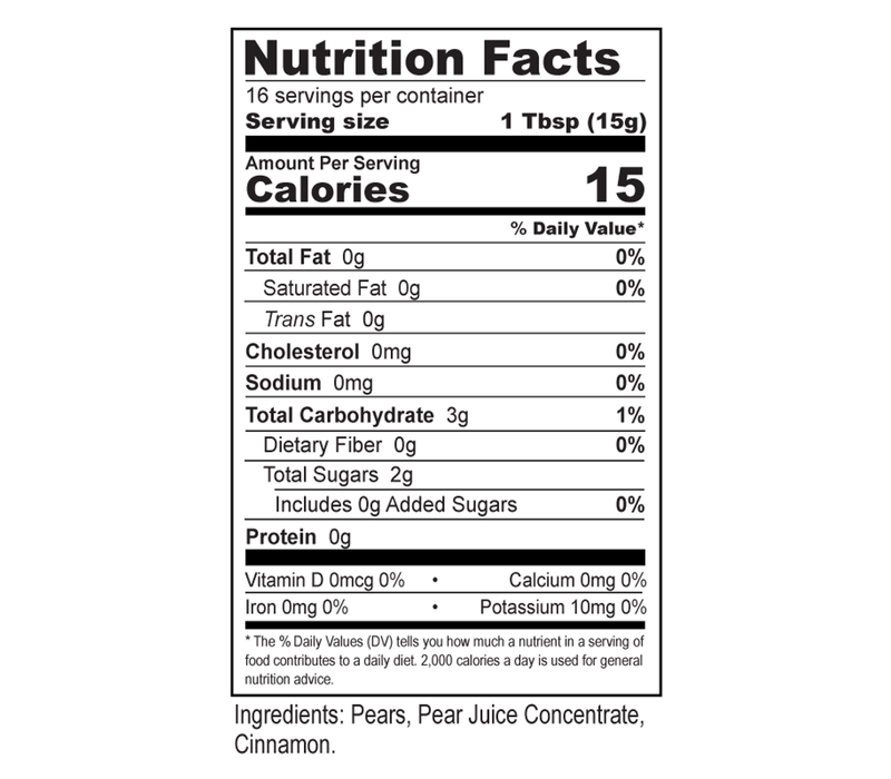 Ingredients: Pears, Pear Juice Concentrate, Cinnamon