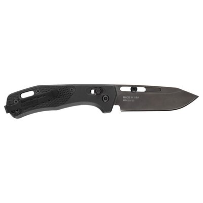 4" (10.16cm) closed. 3" (7.62cm) black stonewash finish S30V stainless blade. Black nylon handle. Thumb stud. Lanyard hole. Pocket clip.