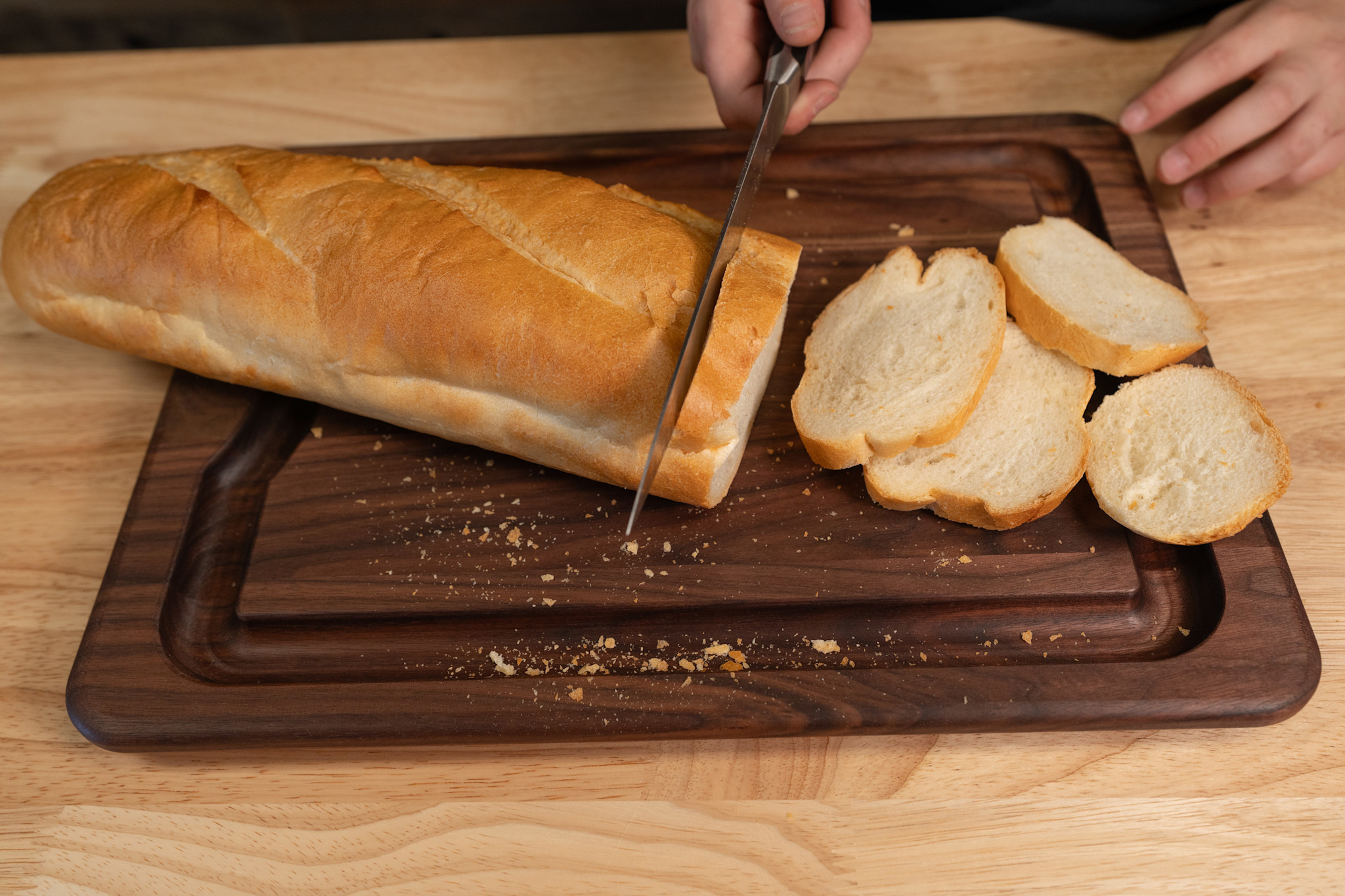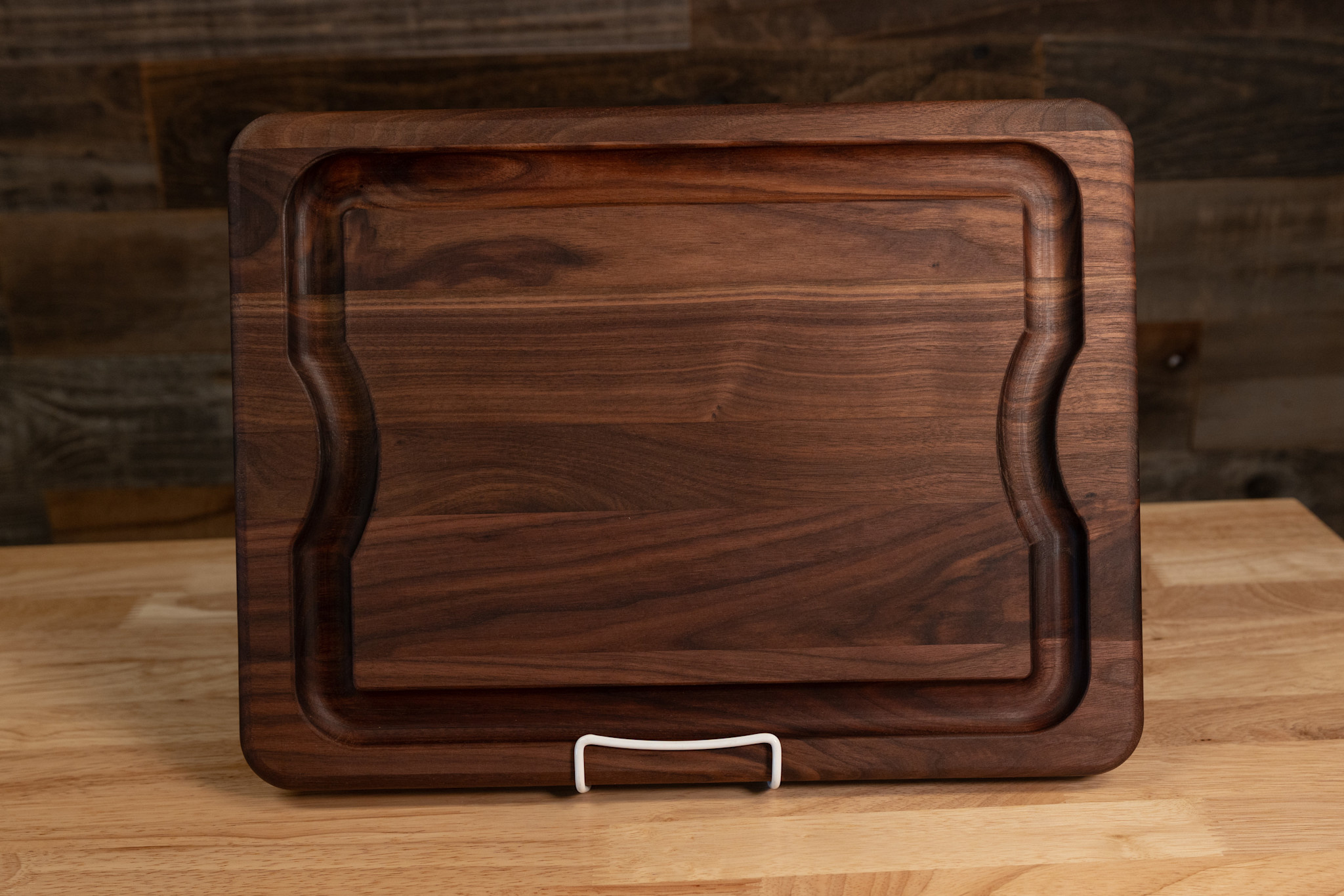 has been added to your shopping cartThis best selling carving board is now made in rich American Walnut. This board is made for going out to the BBQ or bringing your roast to the family table. The undercut handles make carrying an ease.