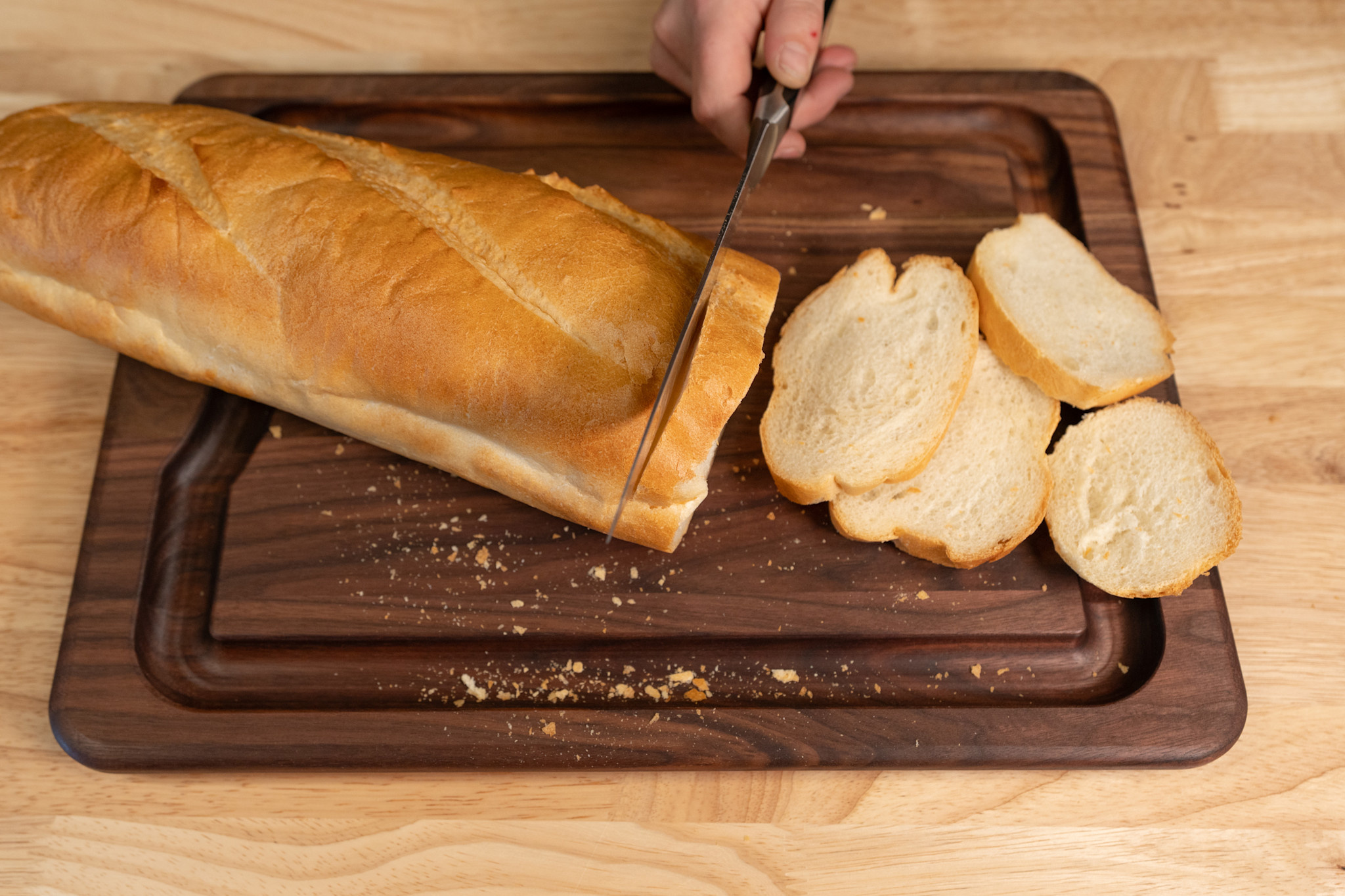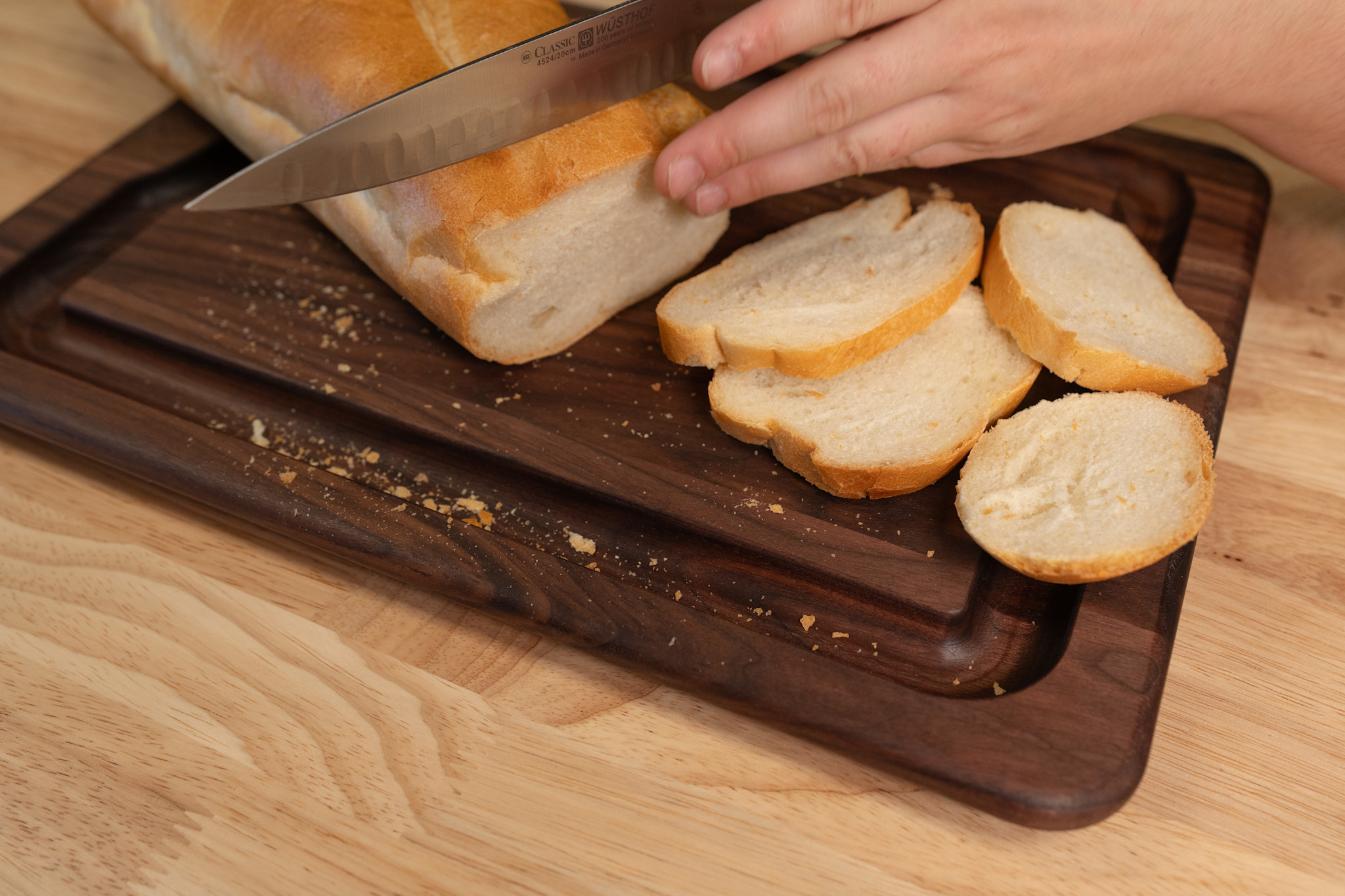 has been added to your shopping cartThis board is made for going out to the BBQ or bringing your roast to the family table. The undercut handles make carrying easy. A wide groove collects the juices while you carve, keeping your counters and table nice and tidy.