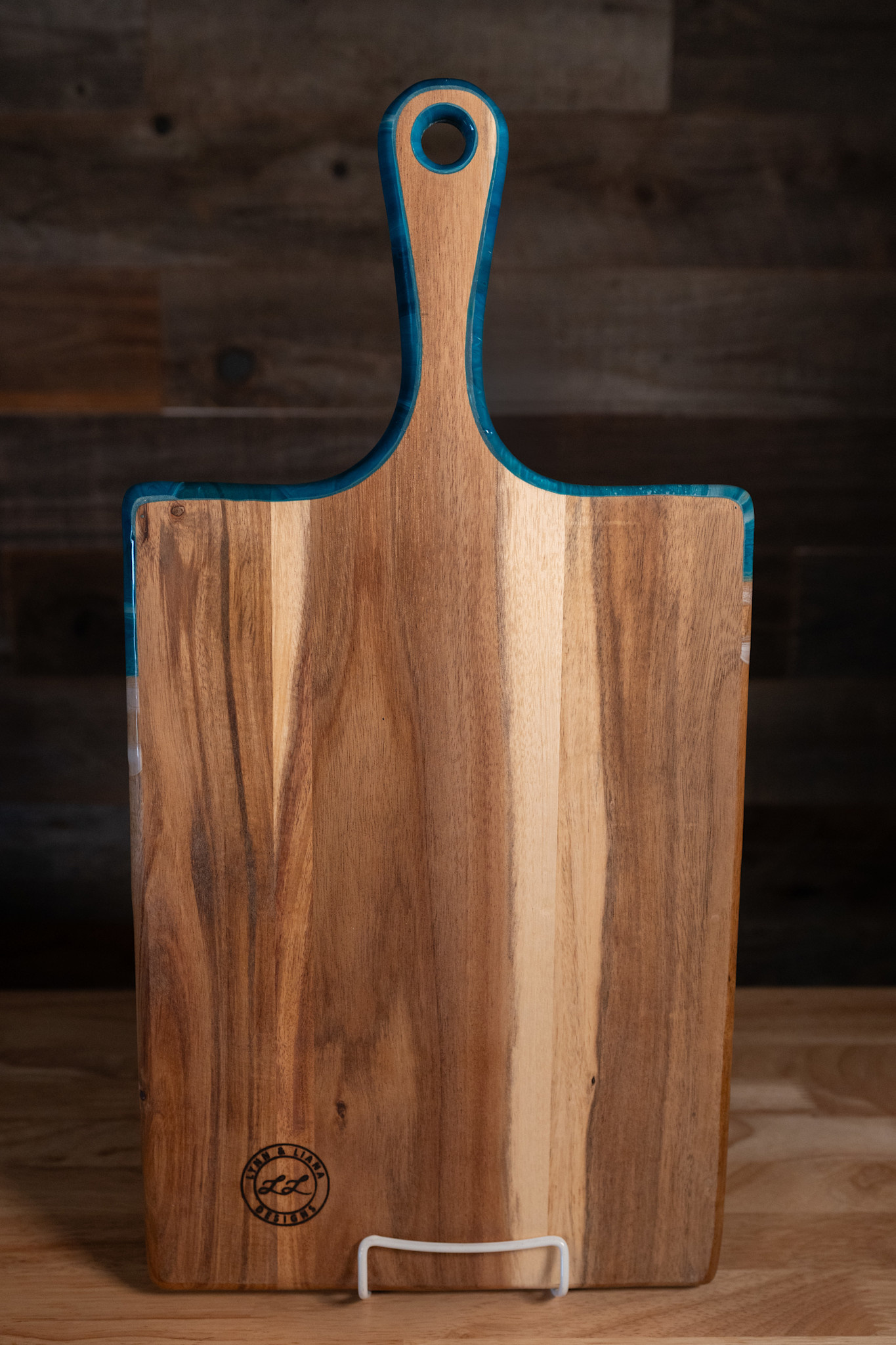 These pieces blend gorgeous Acacia hardwood and an eco-friendly resin to create a one-of-a-kind piece of serveware for your home. These cheese boards are perfect for serving a group of 4-6 people.