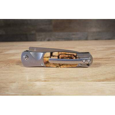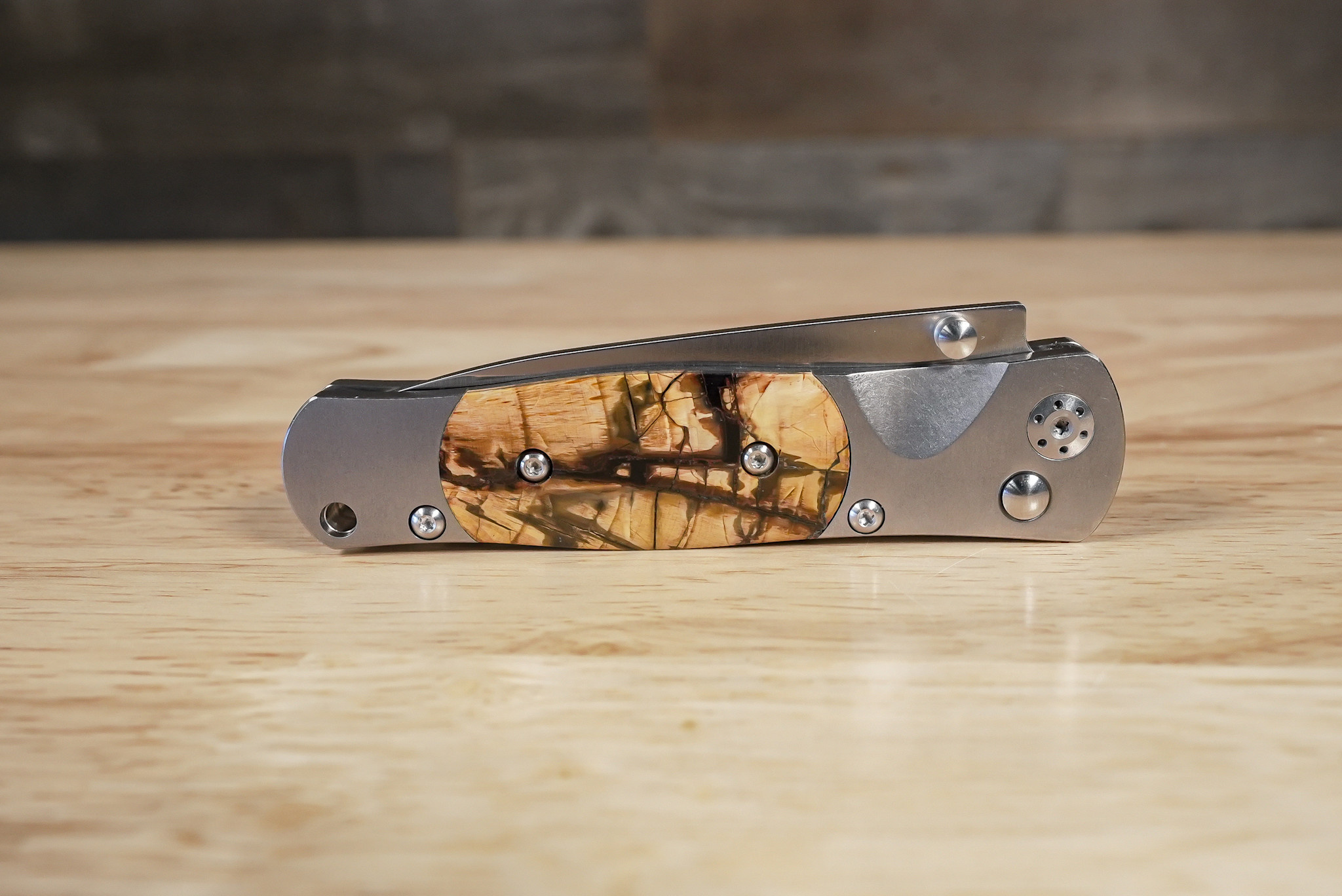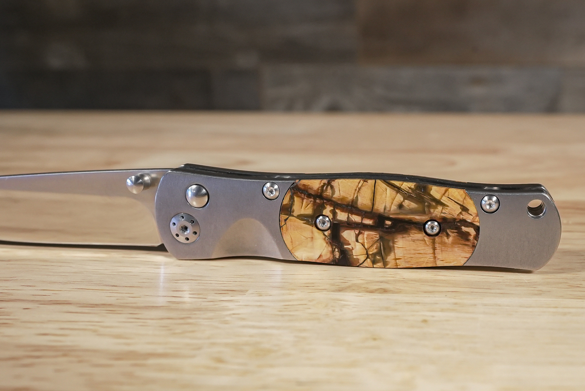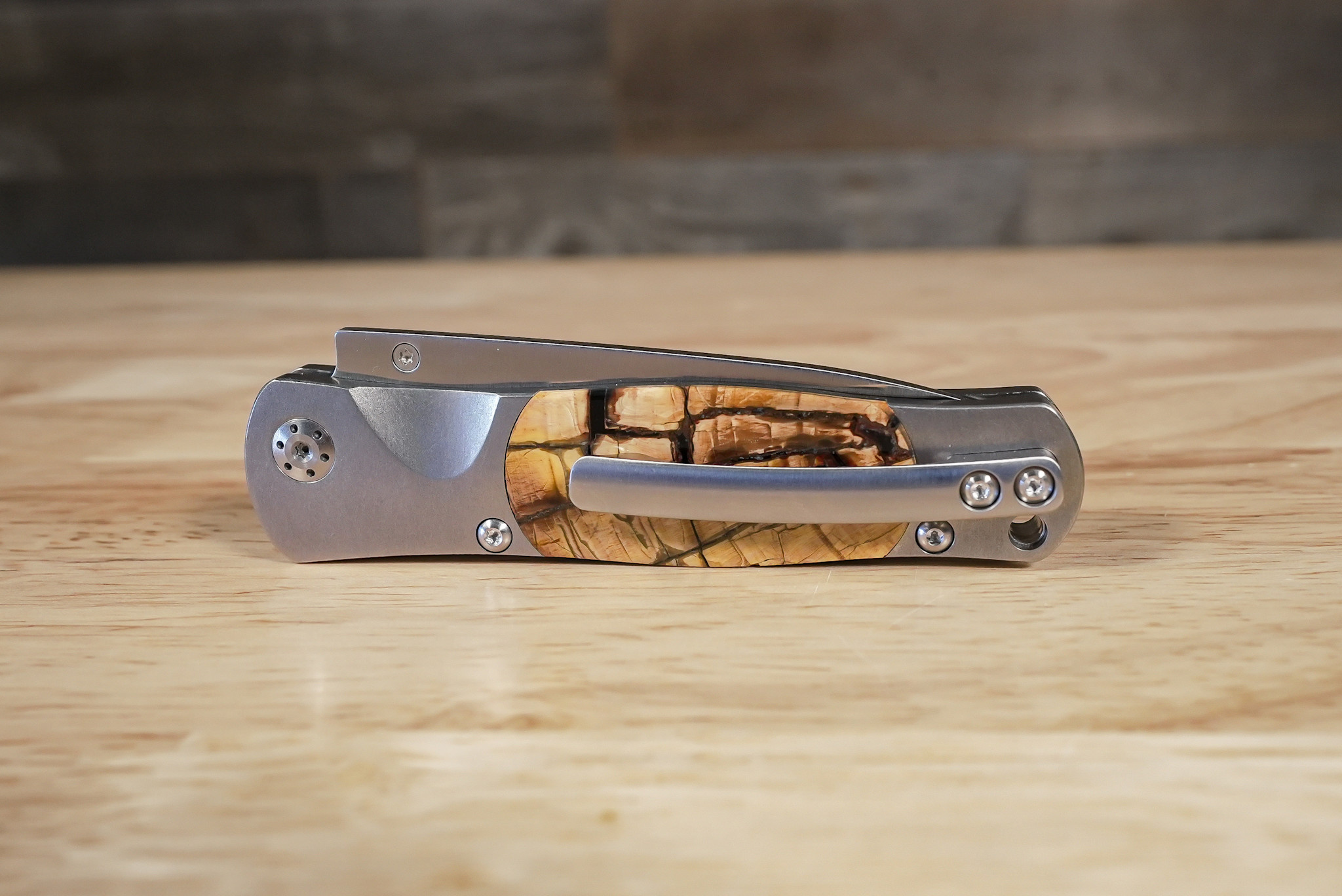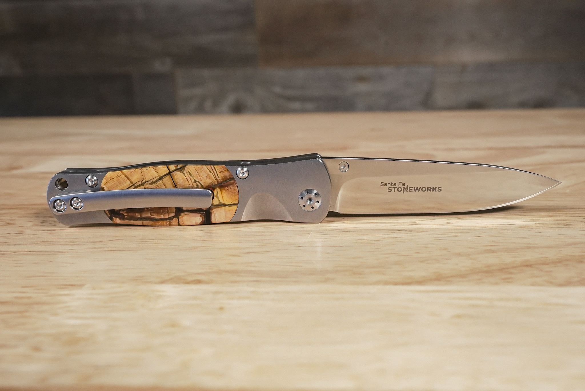 MI01--SantaFeWorks, Buttonlock Titanium Frame VG-10 Blade Mammoth Tusk