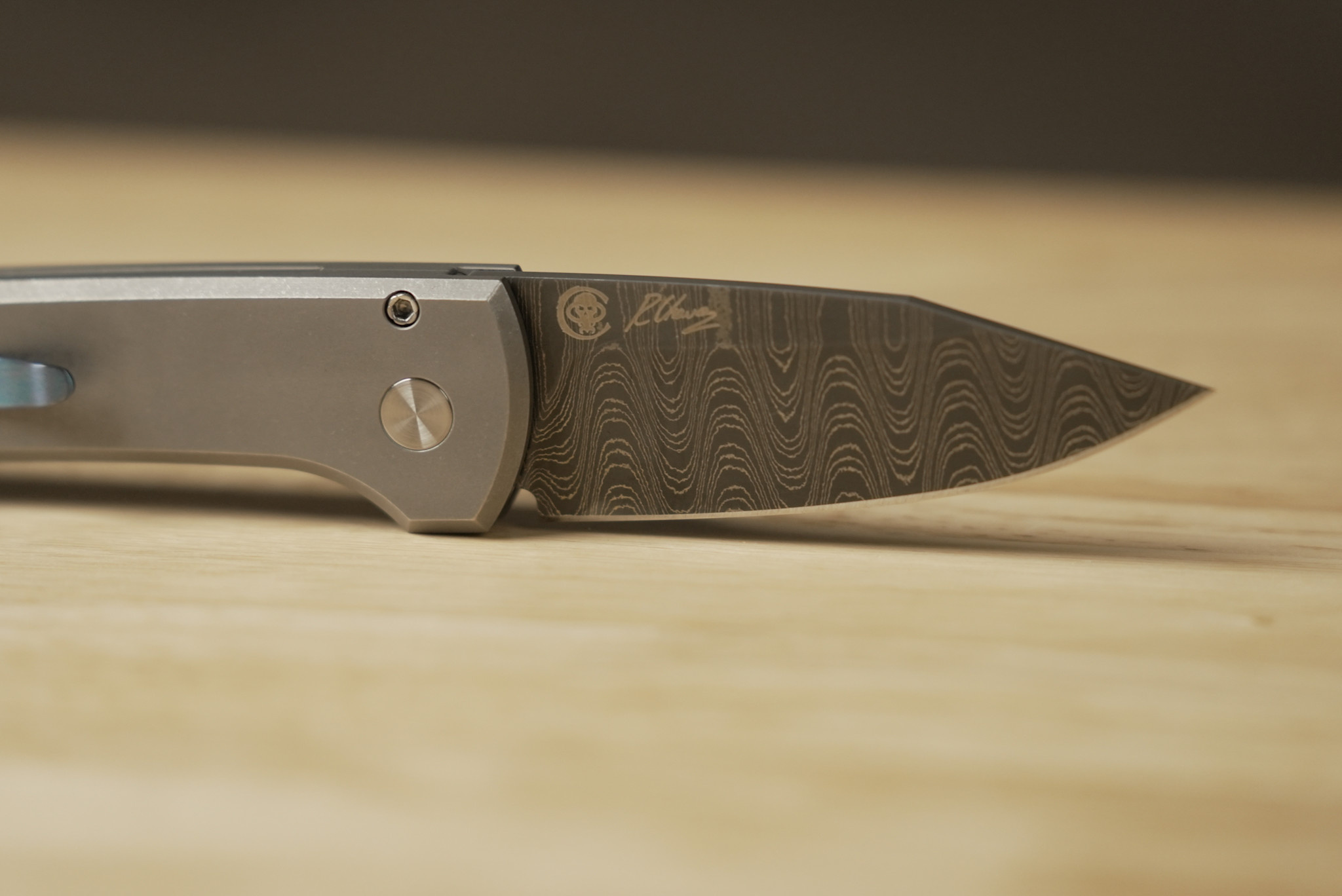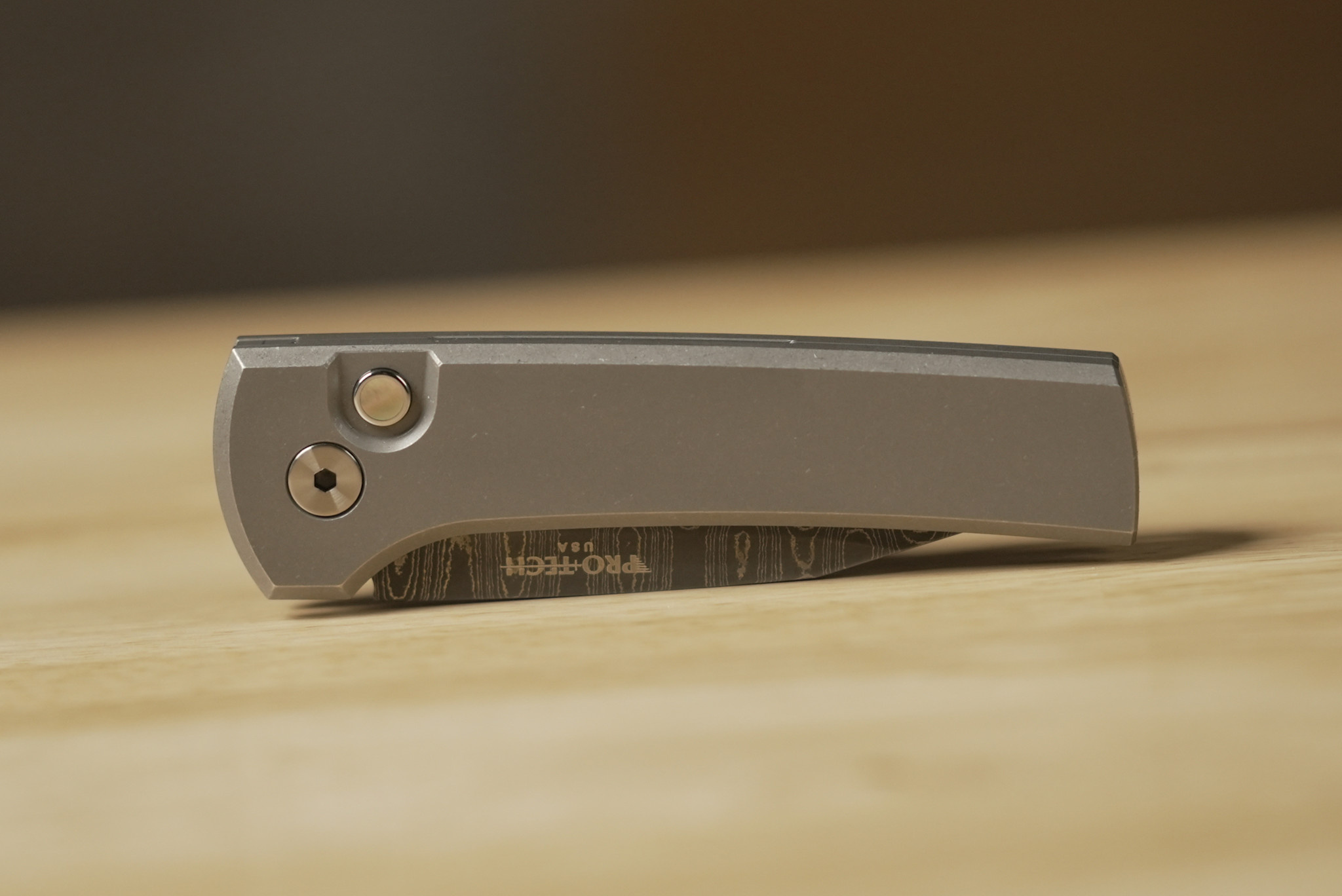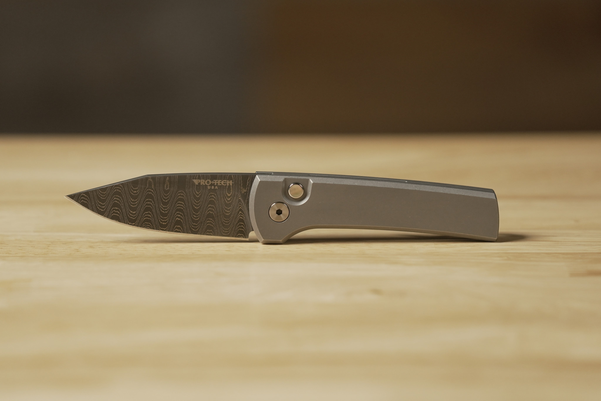 Pro-Tech Chavez Scapegoat Custom, Titanium Handle, Damascus Blade.