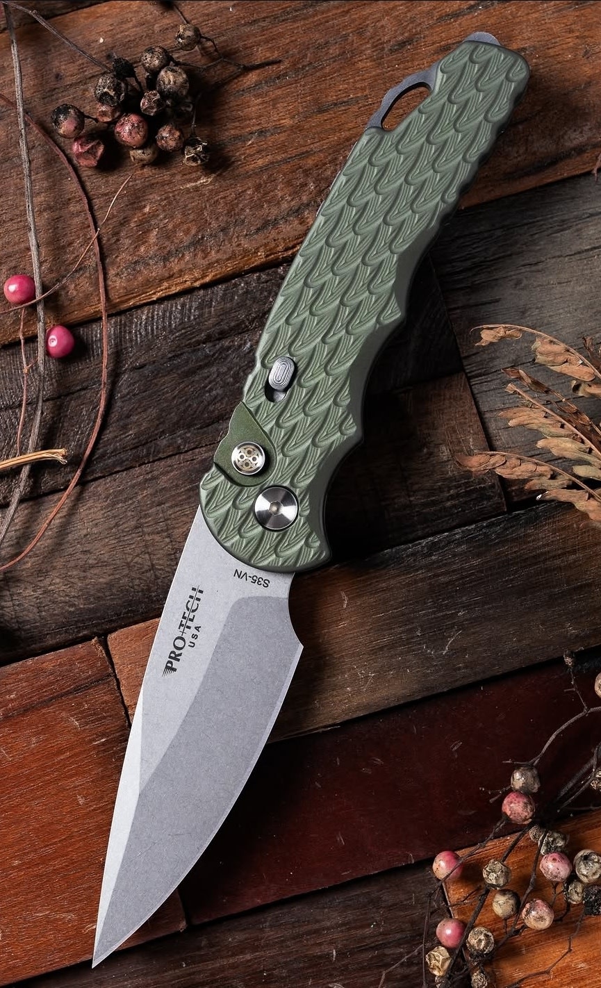 Pro-Tech, TR-5 Green Feathered Aluminum Handle, S35VN Steel