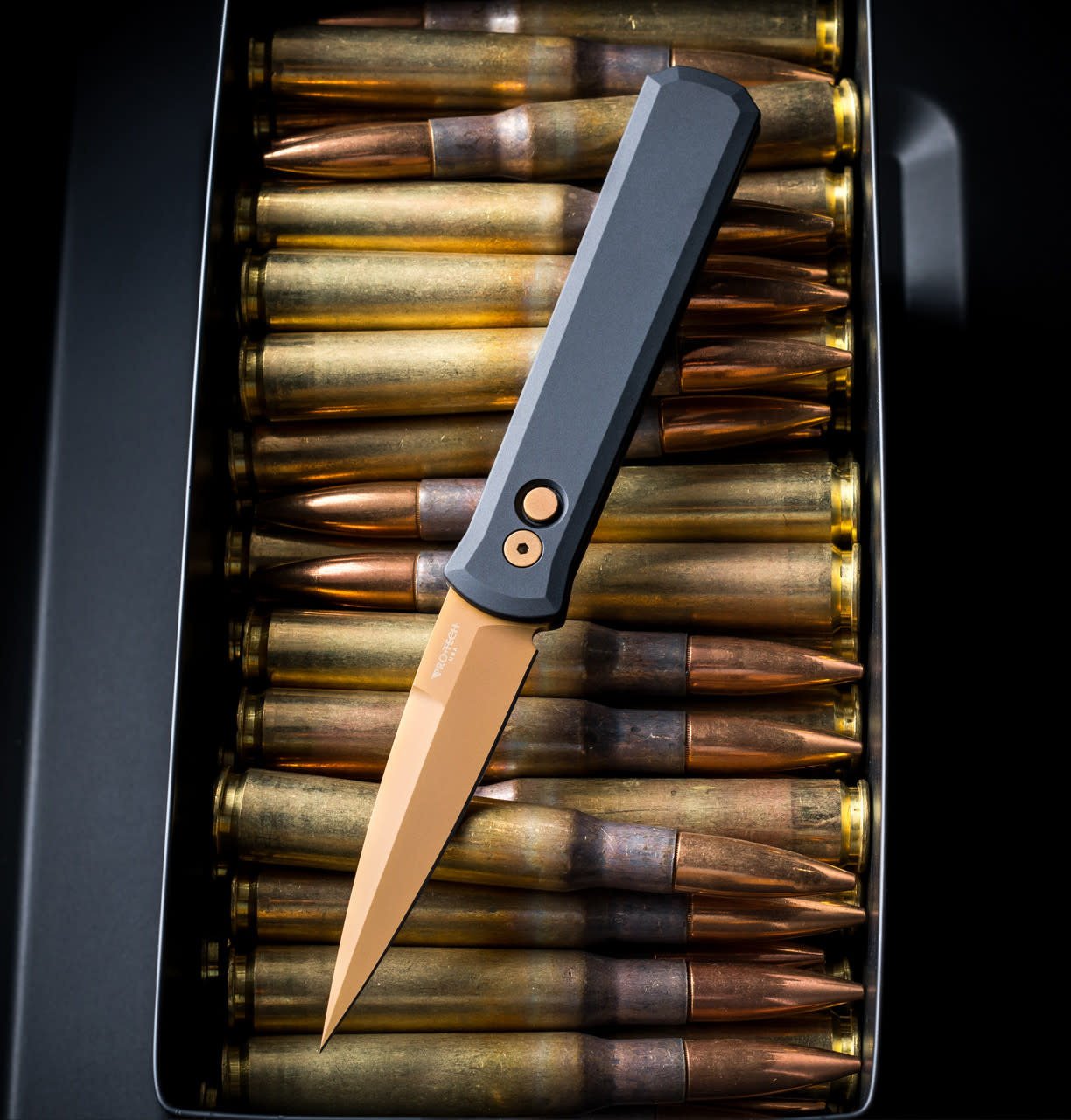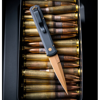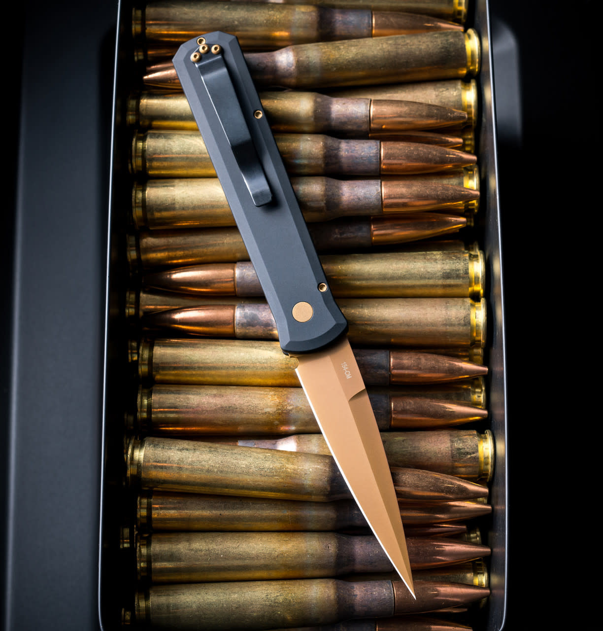ProTech - Godfather, Black Aluminum Handle, Tan PVD Blade, 154CM Steel