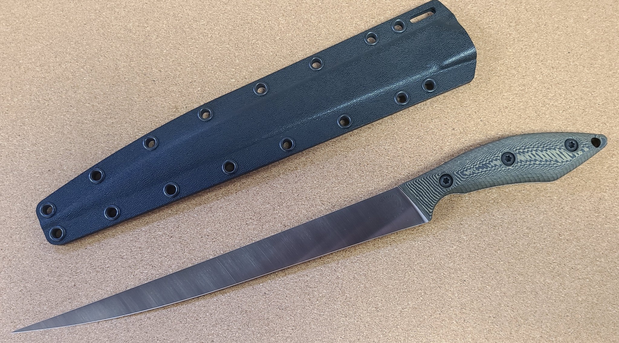 Made from precision ground, cryogenically tempered CPM S35VN steel. The razor sharp edge is leather honed to easily slice with the utmost control and ease. Textured handle scales provide a positive no-slip hand purchase in wet and slimy conditions. Available in blade lengths of 6, 8 or 10 inches. All White River Knives are Made in the U.S.A. and Guaranteed for life.